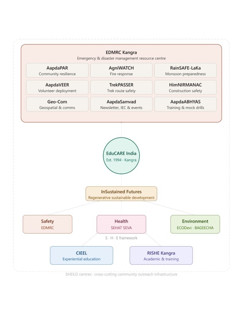 EDMRC is one of several specialised verticals operating under the EduCARE India umbrella. Together, these institutions create an integrated approach to community resilience: