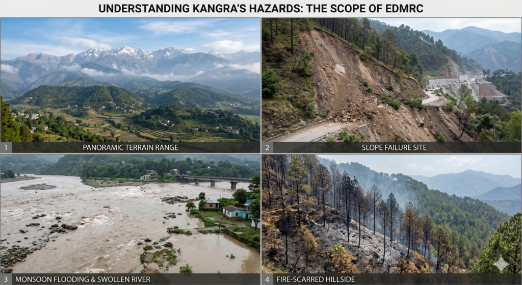 Kangra District, Himachal Pradesh, is among India’s most hazard-prone districts. Situated in the western Himalayas, the district’s terrain produces a complex overlay of natural hazards:
